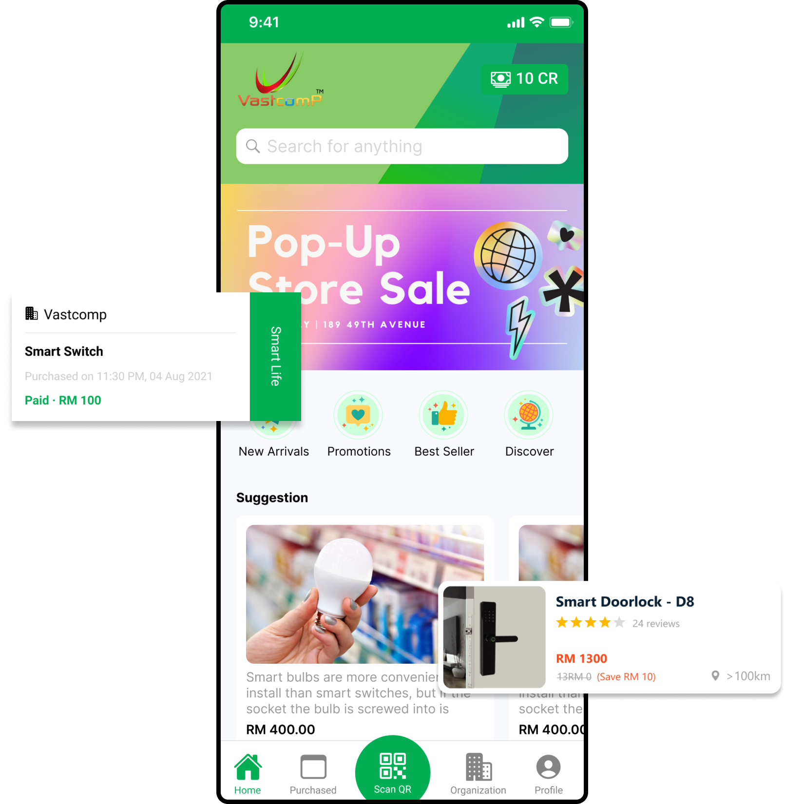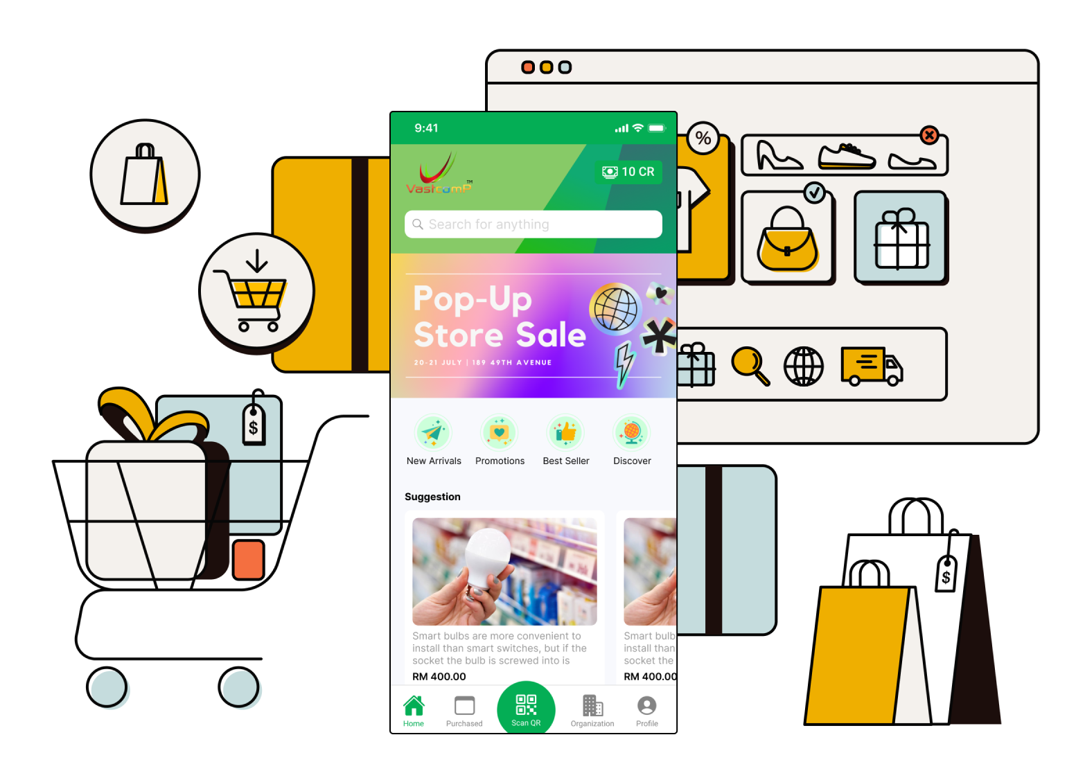 Self-create and manage products effortlessly, present your products to users through product galleries and product information sections.